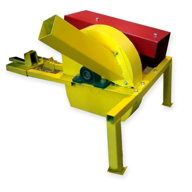 На первый взгляд, измельчители древесины могут выглядеть как небольшие измельчители древесины. Они имеют желоб для подачи материала и отверстие для выброса материала.