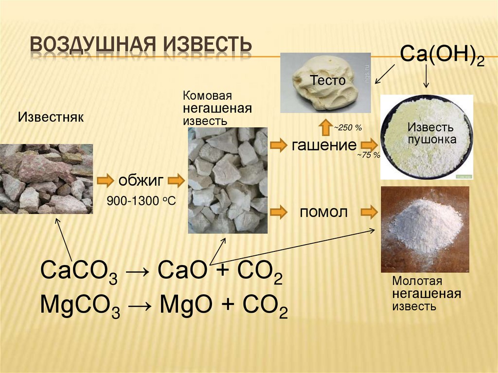 Процесс повторного карбонизации по существу противоположен процессу прокаливания / обжига.И негашеная, и гашеная известь при длительном воздействии воздуха начинают втягивать углекислый газ из атмосферы. Таким образом, это заменяет оксидный компонент химического вещества и возвращает известь примерно в исходное состояние — известняк или мел.