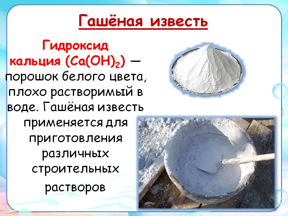 Гашеная и негашеная известь