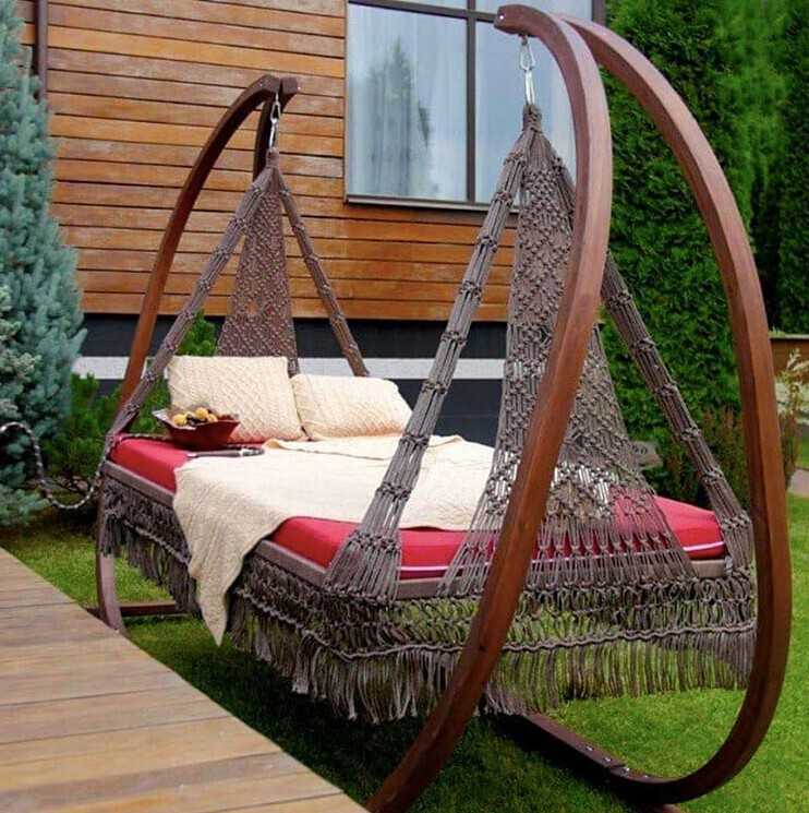 Не уступают в оригинальности и такие одиночные конструкции, как причудливые подвесные корзины, качели-шезлонги и гамаки. Все они дарят возможность насладиться комфортным уединением в объятиях окружающей природы.