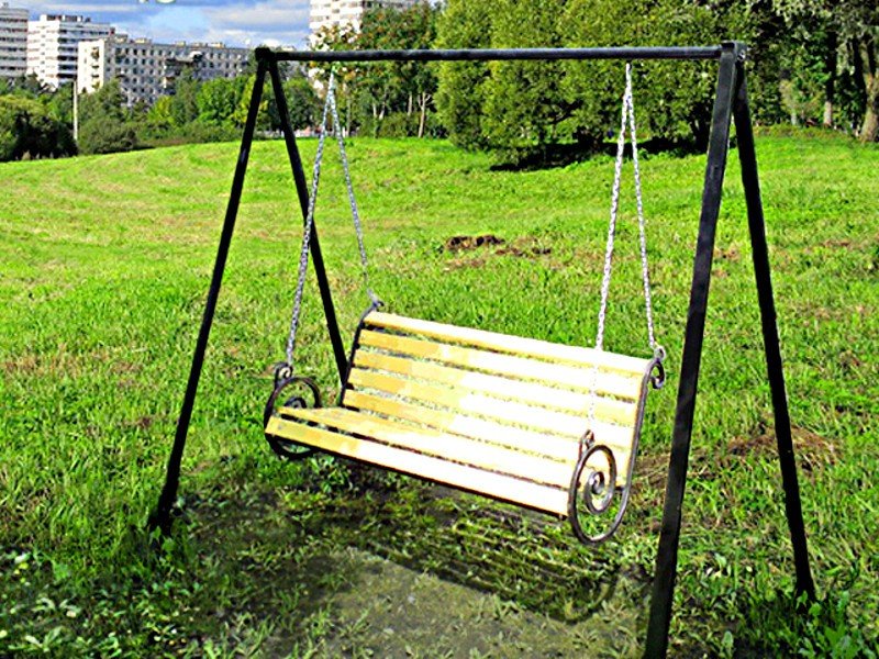Конструкция садовой уличной качели может содержать комбинацию материалов. Например, нередко опоры изготавливаются из металла, а сидение из древесины, сочетая надежность, красоту и комфорт.