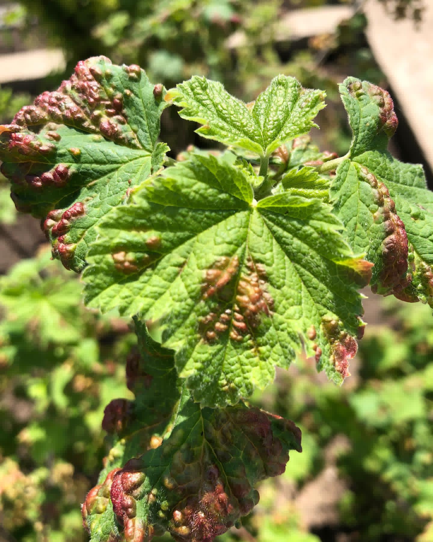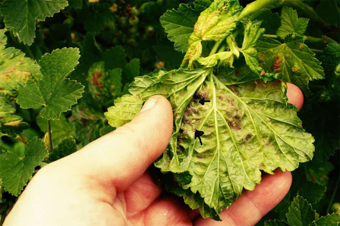 Для галловой тли характерны зелёные или вишнёво-красные вздутия на поверхности листа, для большой смородиновой – хлороз жилок и окрашивание листовых пластин в оранжевый цвет.