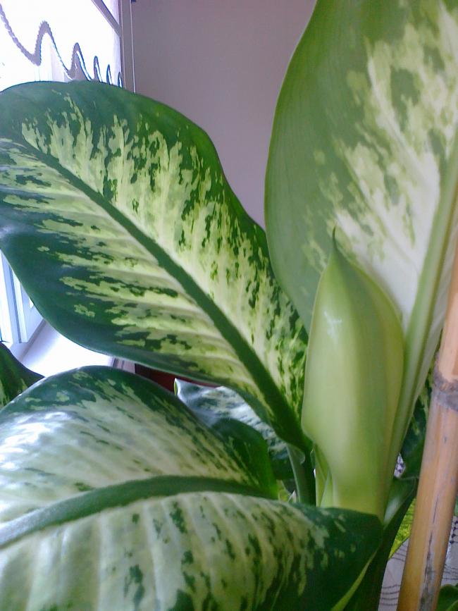 У диффенбахии большие красивые листья, изысканные цветы, она очень быстро растет.