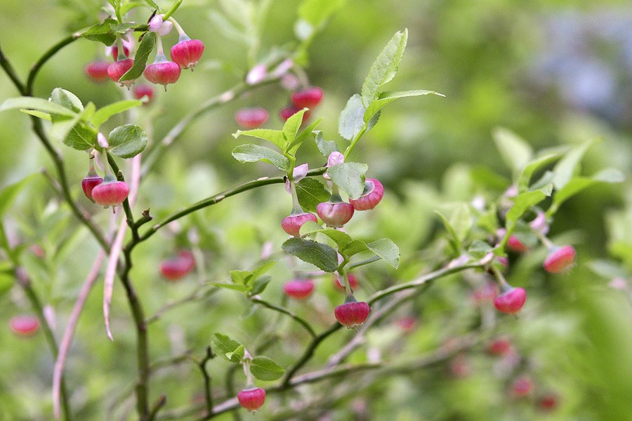 В начале мая голубика начинает цвести. На прошлогодних побегах образуется 4–5 вегетативных почек и распускаются белые или светло-розовые цветы