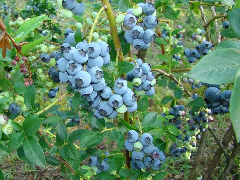 Вес ягод высокорослой американской голубики, в отличие от низкорослого вида, может достигать до 2,5 г, при этом с одного куста можно собрать до 10 кг плодов.