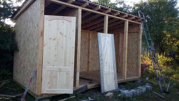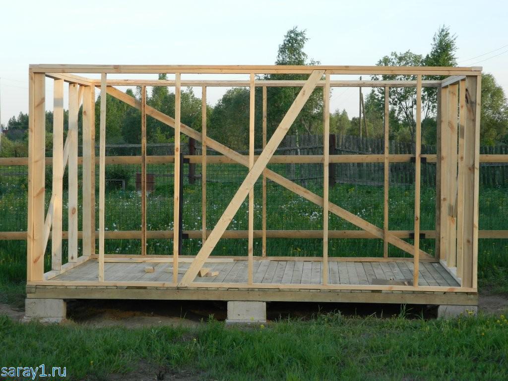 Первое место среди дешевых сараев по праву надо отдать каркасной конструкции. Быстрее такого хозблока ничего соорудить не удастся, причем все работы способен выполнить самостоятельно даже человек без строительного опыта.