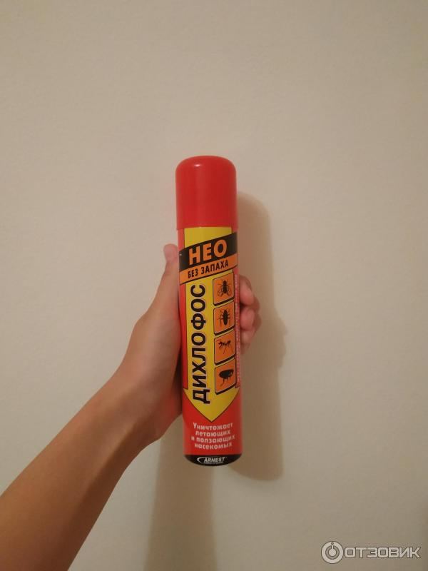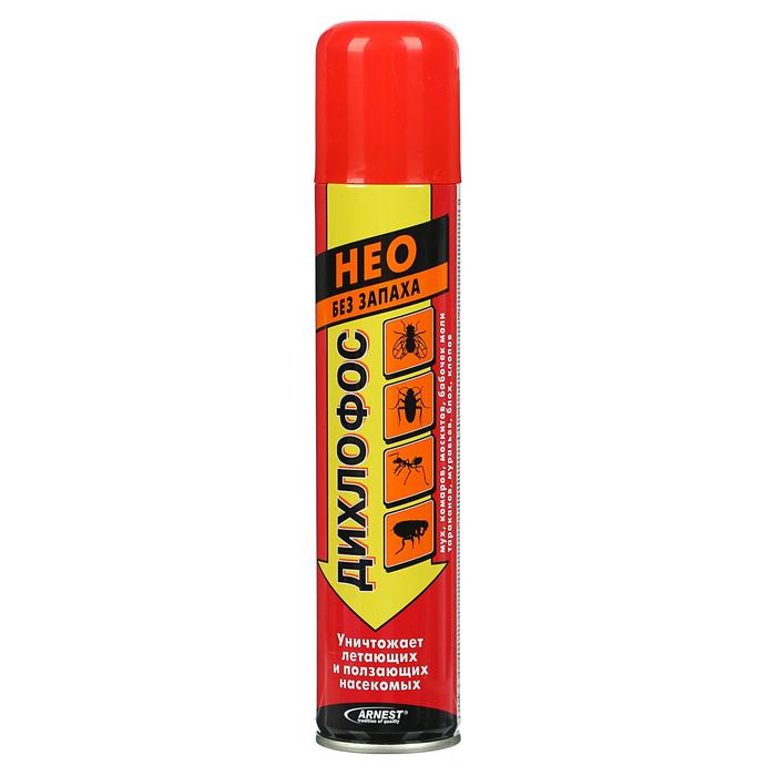 Производитель указывает, что токсичный аэрозоль не имеет запаха, но хозяева, применявшие средство для уничтожения тараканов, блох, мух, муравьёв, клопов, других насекомых, пишут о наличии малоприятного «аромата». Запах у Дихлофоса Нео не такой резкий, как у некоторых инсектицидов, но всё же присутствует.