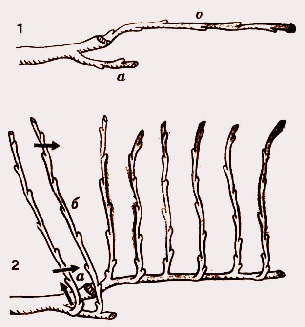Следующей весной оба рукава укорачивают до двух почек и до наступления осени, формируют рукава второго порядка.