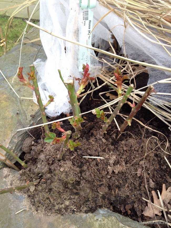 –3 оС нужно убрать верхнее укрытие, оставив только окучивающий материал, чтобы уберечь розы от возвратных весенних заморозков.