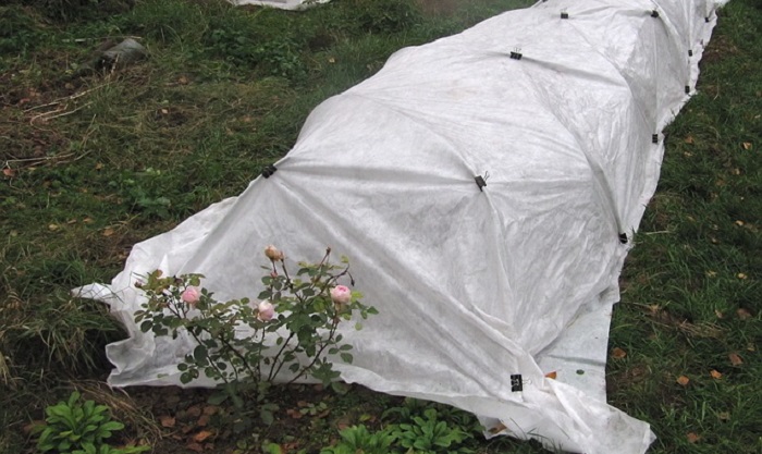 Отличный укрывной материал с лапник, он подходит и под розы и наверх, но это если у вас есть возможность собрать лапник в достаточном количестве.