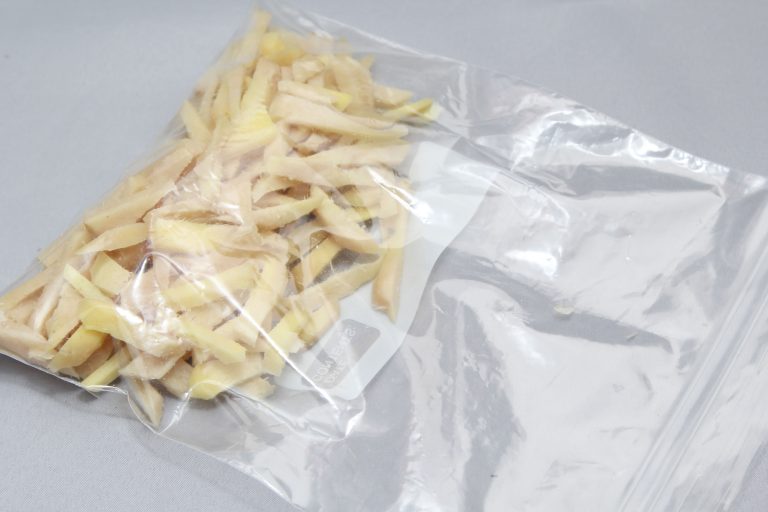 - Сложите нарезанный имбирь в пакет для пищевых продуктов.