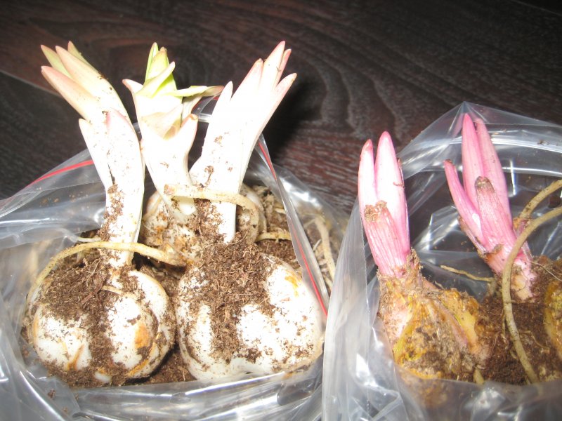 Перед проделыванием всех манипуляций можно подстраховаться, отделив от каждой луковицы по паре внешних чешуек. Их нужно положить в пакет (уже без отверстий), заполнить сфагнумом, надуть, завязать и положить в темное место. Важно не забывать периодически (раз в две недели) проверять на наличие влаги.