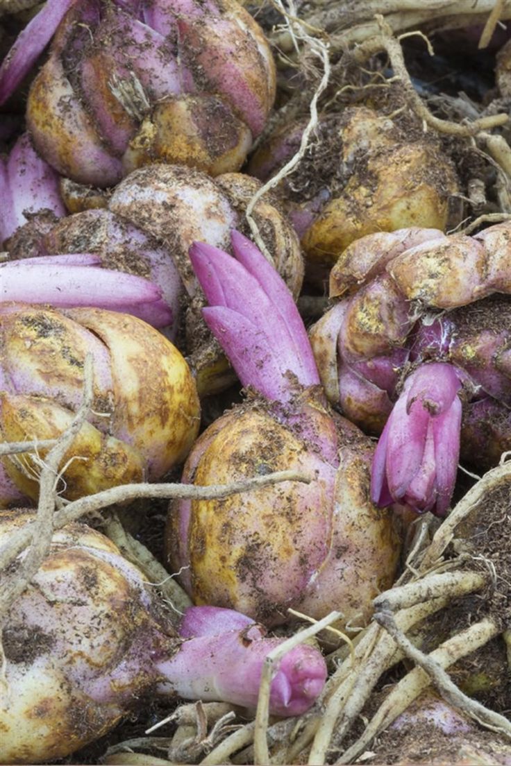 Как только отмирает вегетативная верхушка растения, выкопайте клубнелуковицы. Удалите засохшую клубнелуковицу и храните новые клубнелуковицы на зиму в защищенном от мороза месте. Избегайте хранения в местах с высокими температурами и низкой влажностью.
