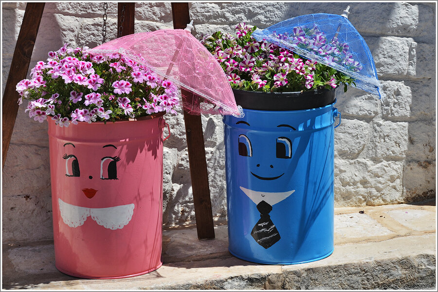 17) Цветы из пластиковых горшков: добавьте немного изюминки на улицу с помощью этих цветов в горшках.