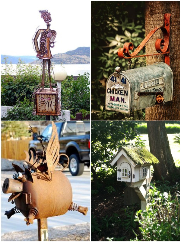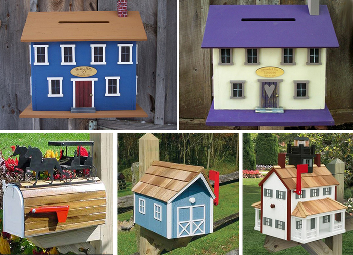 Оригинальные почтовые коробки могут быть выполнены из любого материала, бумаги, картона, бутылок или предметов обихода и принимать любую форму в зависимости от желаний автора.