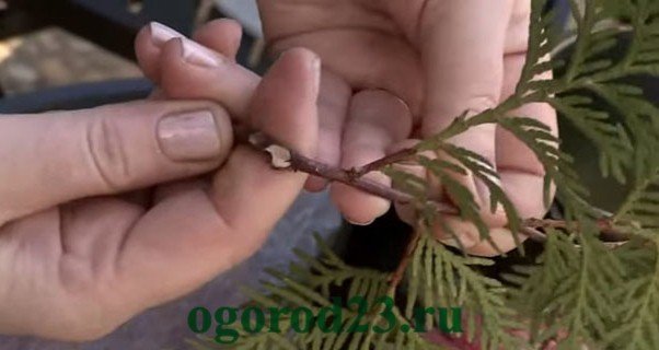 - аккуратно сжать кончиками пальцев иглы – если чувствуется легкий влажный холод, значит с саженцем всё в порядке и разведение туи идёт по плану.