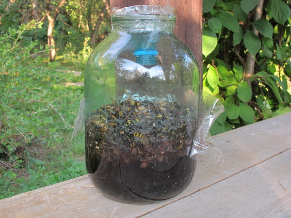 Время от времени погибших ос надо вытряхивать и заливать в бутылки новый сироп.