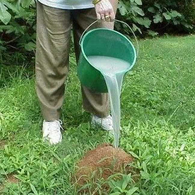 Кипяток — простой, но крайне эффективный способ борьбы с муравьями, если вы не боитесь заливать его прямо в муравейник. Если одного раза для исчезновения всех особей не хватило, нужно повторить эту не слишком приятную процедуру через 2-3 дня. Кипяток нельзя использовать там, где растут ваши посадки, иначе растения погибнут.