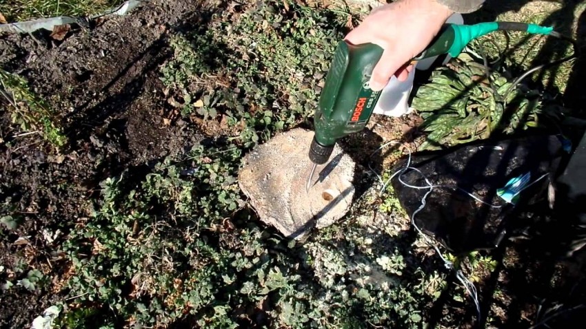 Нередко садоводы используют еще один оригинальный способ. Они высаживают молодые деревья прямо в пень. Остов укорачивают под корень, в центре делают ямку. Для этого можно применить дрель. В углубление закладывают удобрение – торф, золу, перегной, песок, навоз. В ямку высаживают саженец, который будет брать питательные элементы для роста из старого пня.