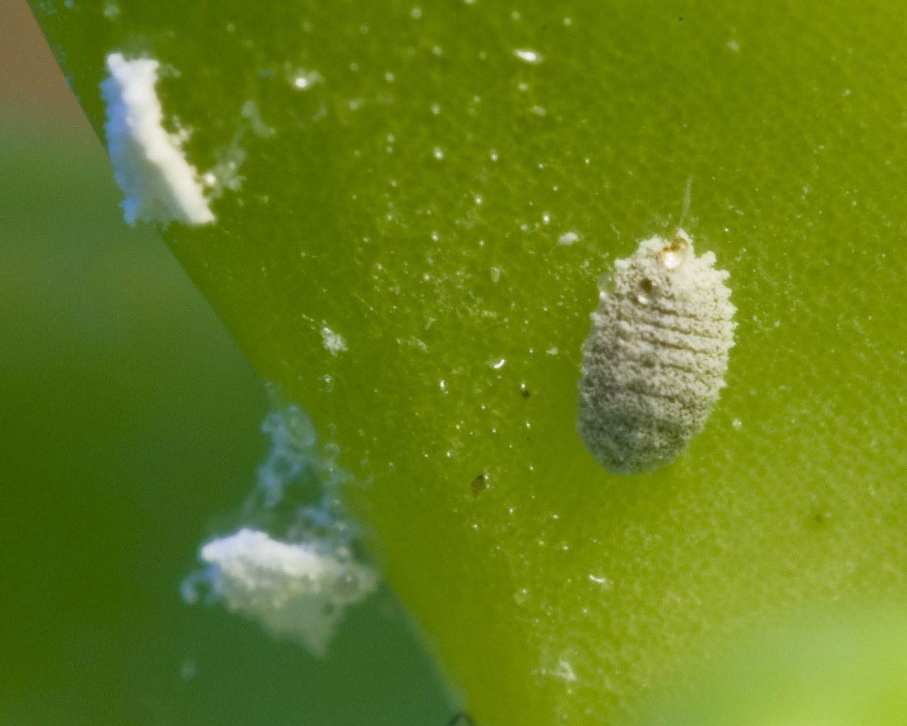 Размер чешуи варьируется от одного до пяти миллиметров, и на определенных этапах жизни ее может быть трудно увидеть без увеличения. Мягкая чешуя у самцов кажется сероватой или белой и может быть похожа на мучнистого червеца. Мягкая чешуя повреждает растение, высасывая сок из растения.Он также оставляет после себя липкие выделения, называемые медвяной росой.