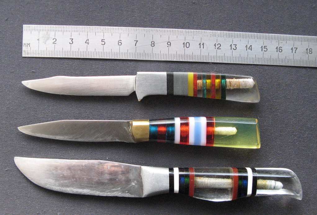 Для ножа, в котором используется всадной хвостовик, в рукоятке следует просверлить отверстие такой же длины, при необходимости расширить его надфилем. Затем, заранее приготовленную, эпоксидную смолу смешивают с опилками и заполняют этим раствором просверленное отверстие. После чего устанавливается лезвие. Ножом можно пользоваться через сутки, после полного затвердевания смолы.