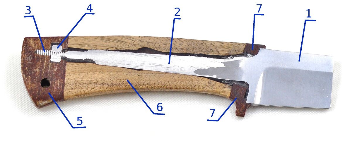 Крепеж хвостовика и рукоятки осуществляется либо заклепками из медного или латунного прутка, либо эпоксидной смолой и ее аналогами.