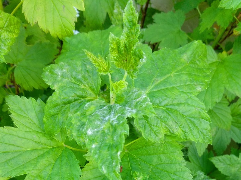 Это грибное заболевание, поражающее листья, плоды и верхушки побегов. Пораженные части растения покрываются мучнистым налетом. Листья скручиваются и засыхают, а ягоды осыпаются. Верхушки побегов темнеют, искривляются, сохнут.