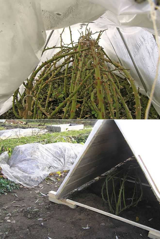 Важно знать, как правильно укрыть розы на зиму. Этот вариант хорош для плетистых роз, растущих рядами. Для цветов, которые размещаются на клумбе и окружены другими растениями, придется использовать другой способ, ведь тяжелые деревянные конструкции легко могут их повредить.