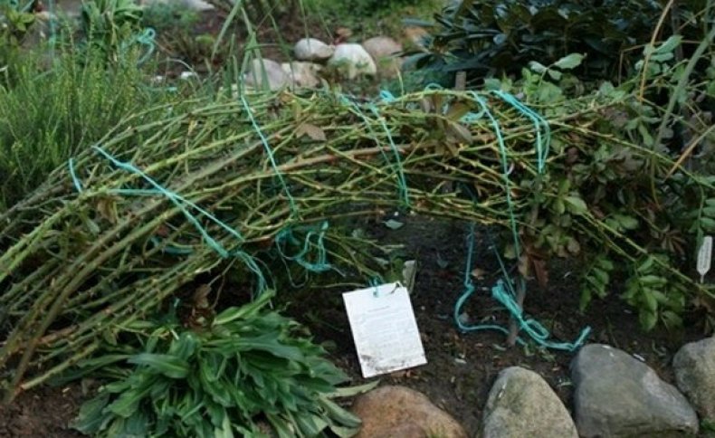 Делая такое сооружение, следует учитывать, что расстояние между кустом и верхом шалаша должно быть 20 см.