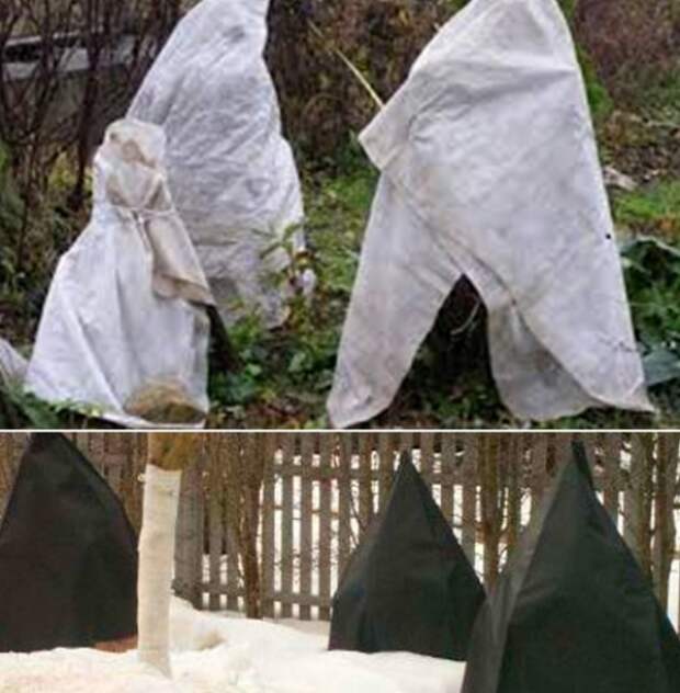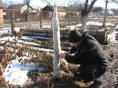 Но если зима будет слишком теплая или холодная, то придется посетить участок еще раз, чтобы обеспечить должную защиту или частично избавиться от утепляющего материала, т. к. в теплую погоду древесина может начать подпревать.