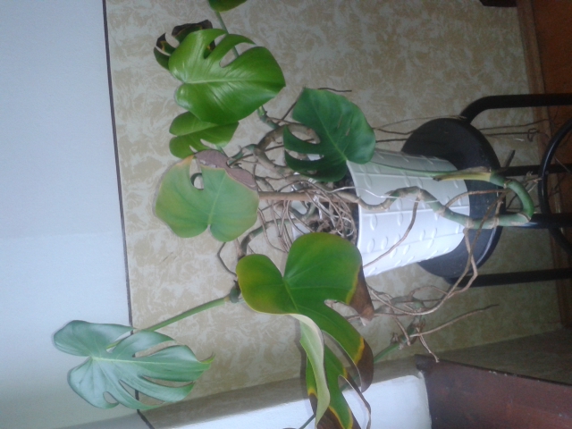 Все представители рода Монстера характеризуются наличием на стебле воздушных корней, из которых одни служат для прикрепления к деревьям, а другие достигают земли и укореняются. У горшечных растений отрезать их нельзя: свободно свисающие корни, не обвивающие опору, надо направлять в сторону горшка, чтобы они могли укорениться.