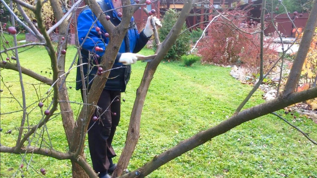 Как и весной, в первую очередь удалите все сухие, больные, тонкие и поврежденные во время уборки урожая ветви (пораженные болезнью вырежьте полностью). Обрежьте загущающие крону боковые побеги на скелетных ветках, а также всю лишнюю прикорневую поросль. Ее удаление проходит безболезненно для растений.