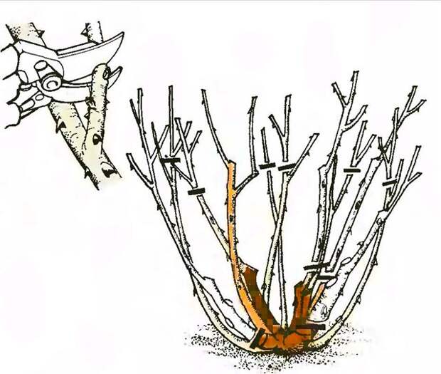 Весной до начала вегетации их острым секатором просто укорачивают до 3-5 почек от земли. На слабых побегах оставляют 2-3 почки, на побегах посильнее — до 5. Срез нужно делать примерно на 1 см выше наружной почки, с наклоном от нее. Если в мае розы выбросят сильные побеги, их верхушки следует прищипнуть, чтобы куст ветвился, не был «голенастым».