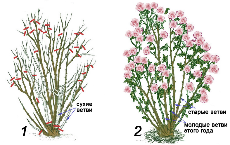 Обрезка кустовых и бордюрных розИллюстрация из книги по розам