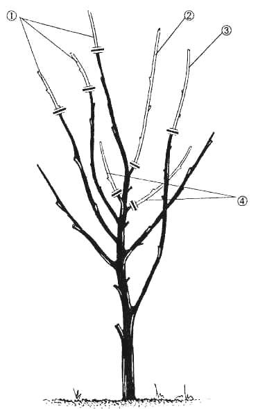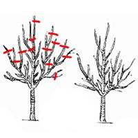 - • На второй год обрежьте прошлогодний прирост основных ветвей на треть и удалите все вертикальные побеги на верхушке дерева.