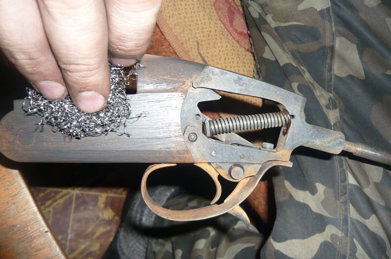 Но и это ещё не самый сложный случай. Реально сложный – это когда ружьё, например, вашего дедушки было на несколько лет забыто где-то в сарае или подвале. И когда вы его обнаружили, оно было покрыто ровным слоем ржавчины на всех металлических местах.
