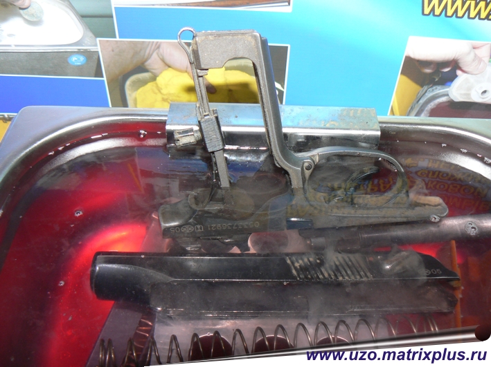 В результате появится пористая чёрная поверхность, отличающаяся повышенной прочностью. Что важно – полученные таким образом поры способны впитывать масла, которыми смазывается оружие. А по мере высыхания поверхности, масла будут подниматься наверх, что приведёт к практически самосмазыванию деталей и металлических элементов.