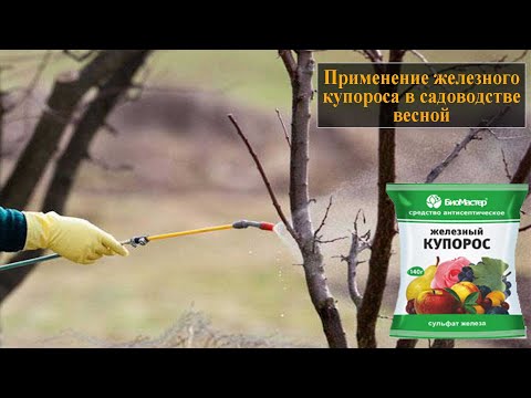 Опрыскивают железным купоросом деревья и кустарники в период покоя, когда они находятся в безлиственном состоянии. Железный купорос убивает мхи, лишайники и яички медяницы и тлей.