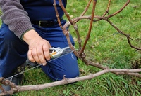 После этого процесс запускается заново: нижняя лоза делится на две почки, образуя новый сучок замещения и новую плодовую лозу. Каждое лето сучок будет отращивать новое плодовое звено, чтобы плодоносная лоза обновлялась с каждым сезоном. Этот прием повторяется в конце лета каждый год.Осенняя обрезка для штамбовой формировки несколько проще. Предназначенный для холодных районов, этот метод подразумевает укрытие растений на зиму. Поэтому основная обрезка происходит весной, когда холодное время года успешно пережито. Осенью же кустарник оставляют в прежнем виде, либо только слегка подрезают высохшие побеги, чтобы у растения была естественная защита от вымерзания.