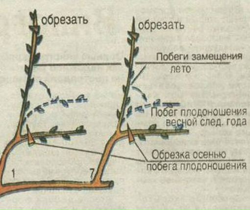 Для этого на будущем сучке замещения оставляют 2-3 глазка, а на плодовой лозе – 6-10.