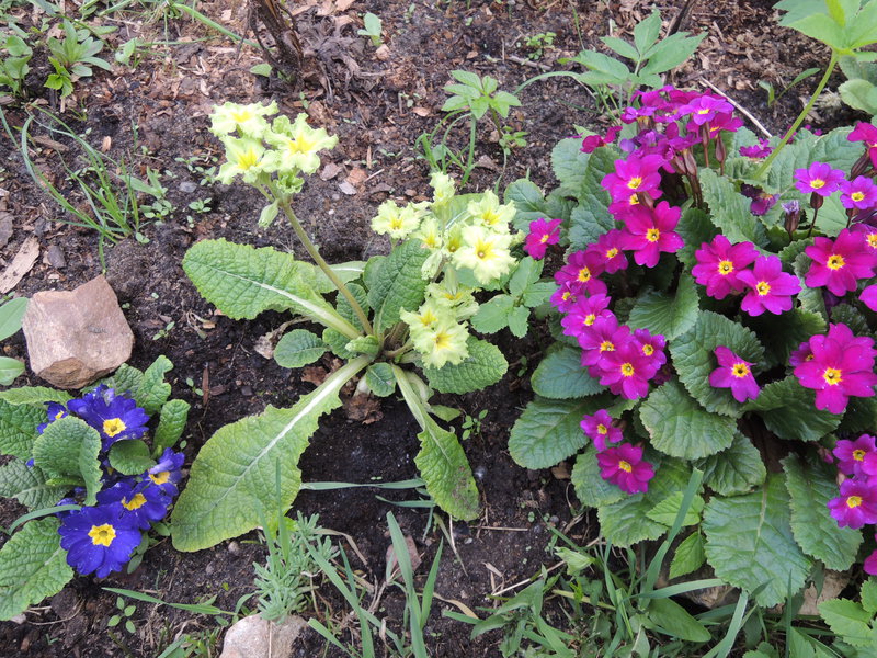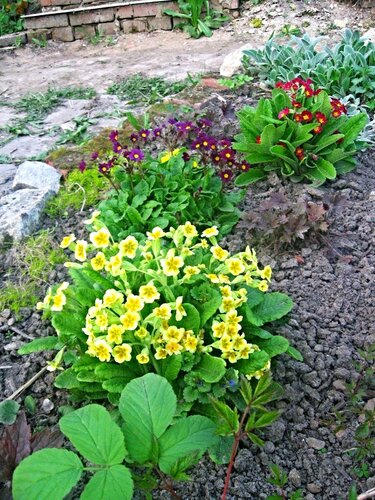 | Мои посевы Primula x polyanthus из Barnhaven Primroses высадили на грядки в моем огороде. Это позволяет мне следить за ними, и им нравится отсутствие конкуренции со стороны сорняков и других многолетних растений. |