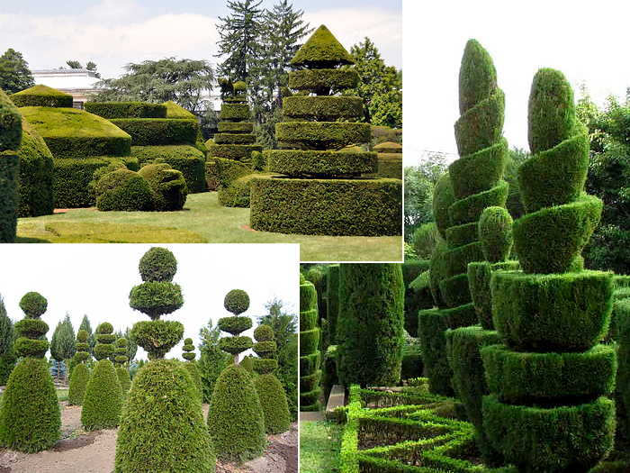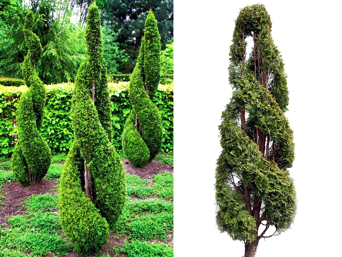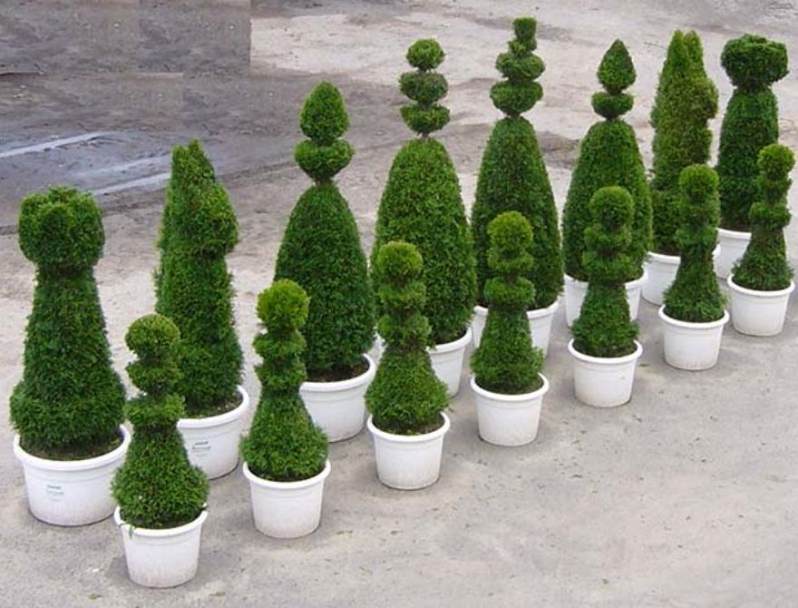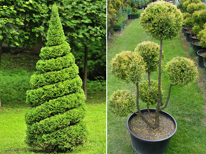 Опытные специалисты сами придумывают, как сформировать тую, создавая уникальные фигуры людей, животных, литературных персонажей, а также компонуя их в целые композиции. На приусадебных участках чаще используются простые силуэты – конусы, пирамиды, шары.
