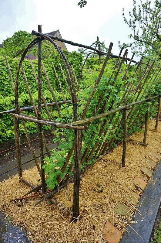 Не рекомендуется использовать для подвязывания и сооружения конструкции материалы, которые быстро окисляются, особенно это касается опор, вбивающихся в землю. Их предварительно замачивают в медном купоросе или обрабатывают битумом.