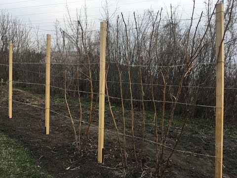 Висячая ежевика эффективно обвешивается вертикальной шпалерой из двух или более проволок. Привяжите трости к верхней проволоке и обвяжите трости вокруг проволок, когда они станут длиннее.