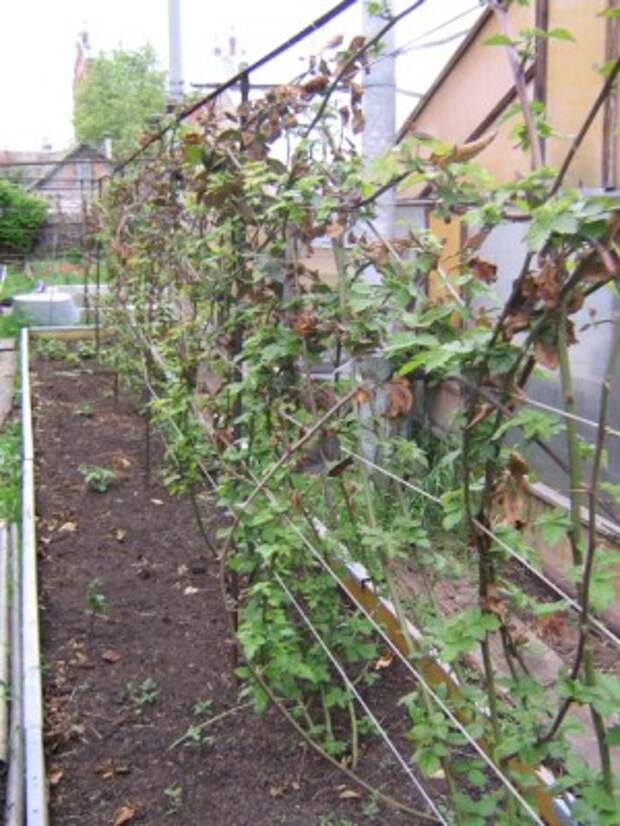 - Стебель должен минимально контактировать с проволокой. При большой площади соприкосновения есть риск повреждения побегов, особенно в ветреную и дождливую погоду.