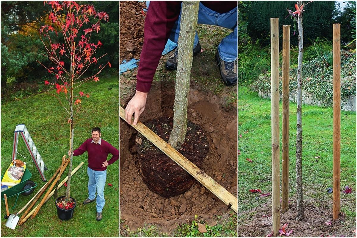 Когда же вы сажаете саженец, корни которого оголены, единственный колышек забивают на самое дно посадочной ямы. В северных широтах его вбивают с той стороны, где встаёт солнце. Однако в том случае, если вы выращиваете яму в южных широтах, колышек вбивают с западной стороны.