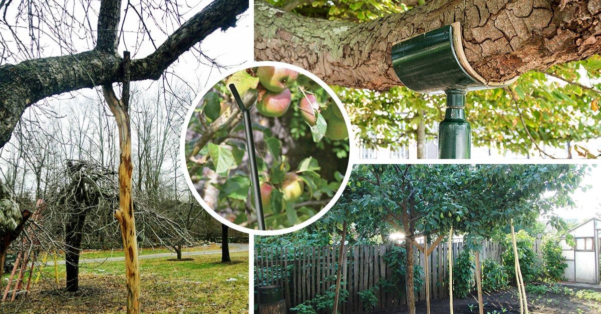 Многие садоводы, тем не менее, предпочитают подпоркам специально сооруженные конструкции, которые нужны для того, чтобы масса плодов равномерно распределялась по дереву. Впрочем, намного чаще используется грамотная обрезка дерева, которая также сохраняет баланс и не даёт отдельным ветвям яблони нагружаться больше других.