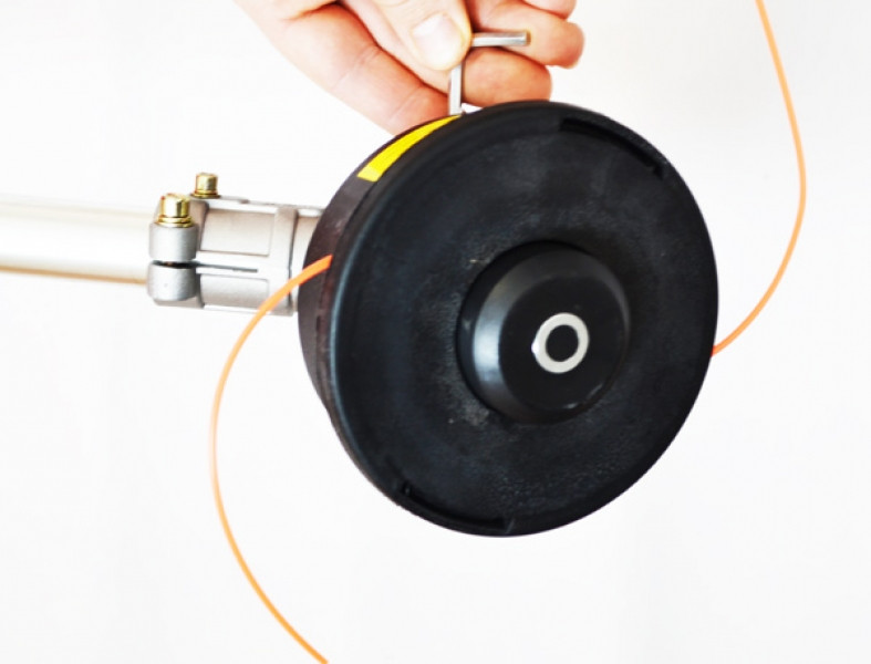 Шпулю устанавливают в головку, вынимают лесу из боковых лопастей и подтягивают. Далее корд плотно фиксируют и закрывают крышку. Последним действием станет установка катушки на косу и вытягивание лески – так, чтобы при обрезке растений она не соприкасалась с защитным кожухом.
