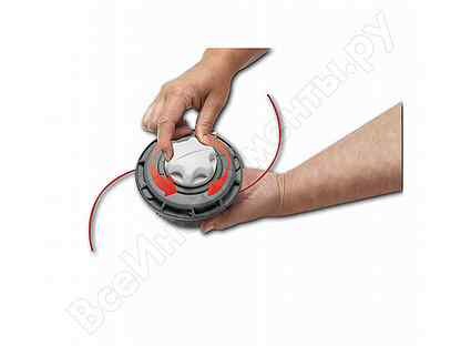 Леска автоматически загружается на оба конца триммера, когда вы поворачиваете головку!
