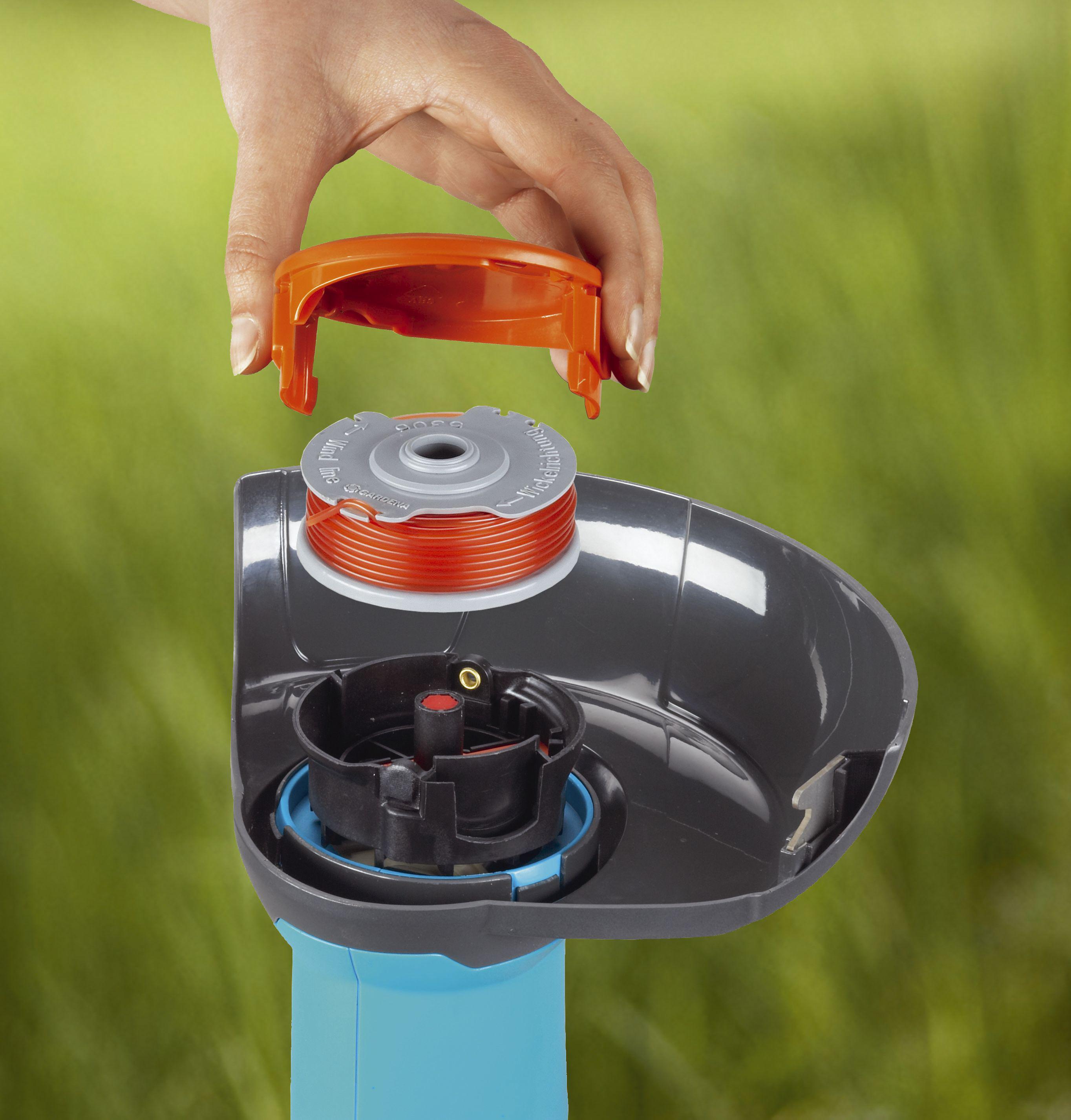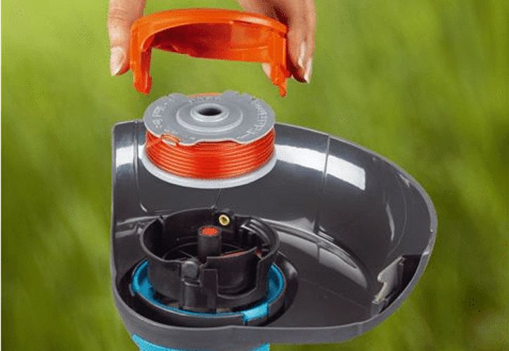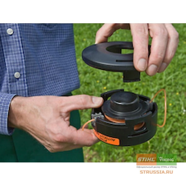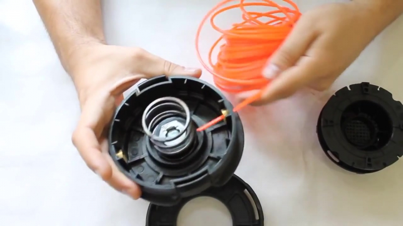 На этом этапе вы заметите разницу между триммером для одинарной и двойной лески. Фиксирующий колпачок имеет двойную форму.